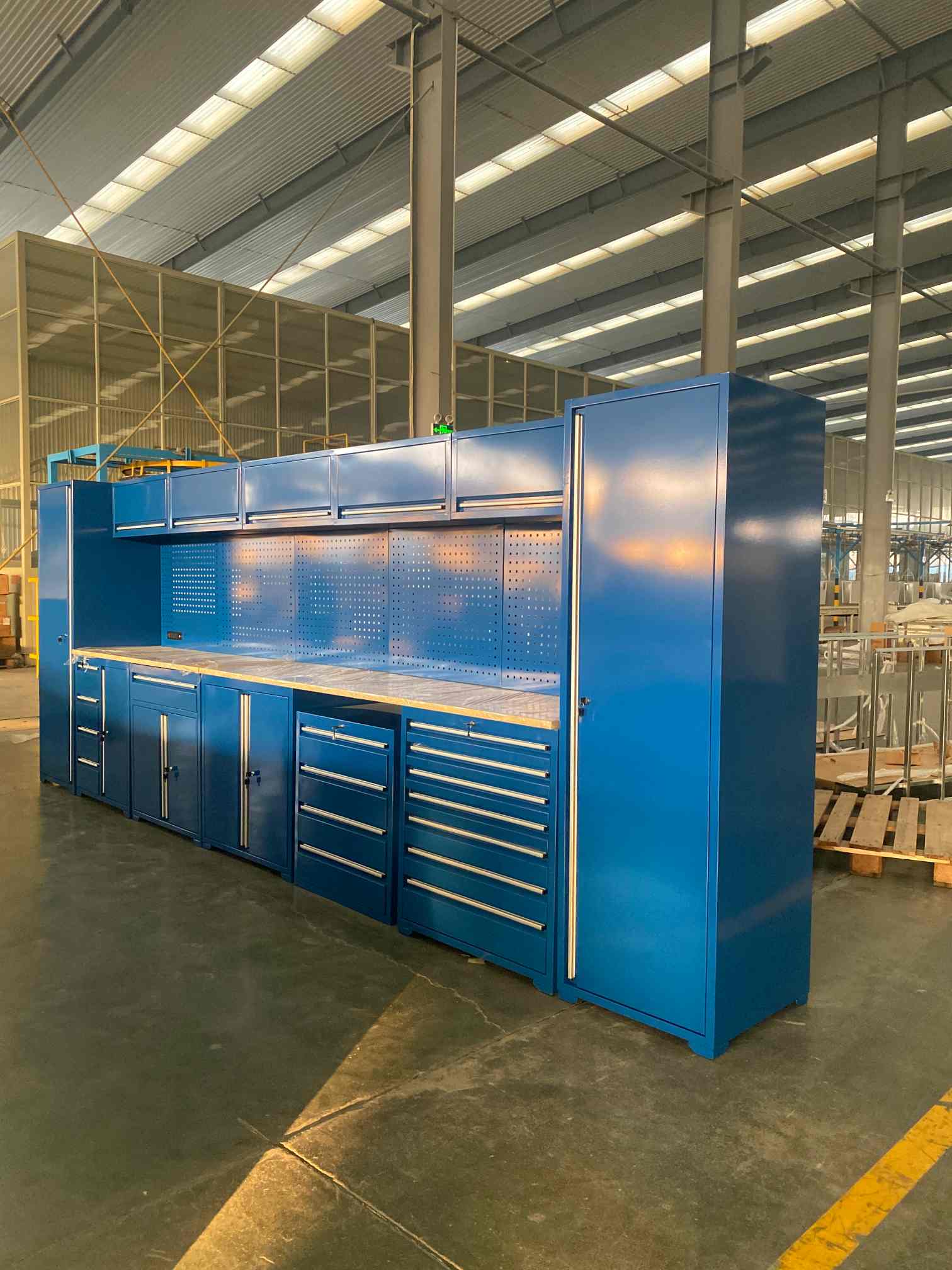 A nagy teherbírású garázstároló szekrény megvastagodott, hidegen hengerelt acélkeretet és dupla rétegű hajlított polcokat fogad el. Terhelési képessége 2-3-szoros a szokásos garázsszekrényeknél, könnyen befogadó tárgyakhoz, például autós gumiabroncsokhoz, hidraulikus emelőhöz és nehéz csavarkulccsal, deformáció nélkül, még hosszú távú használat után sem.