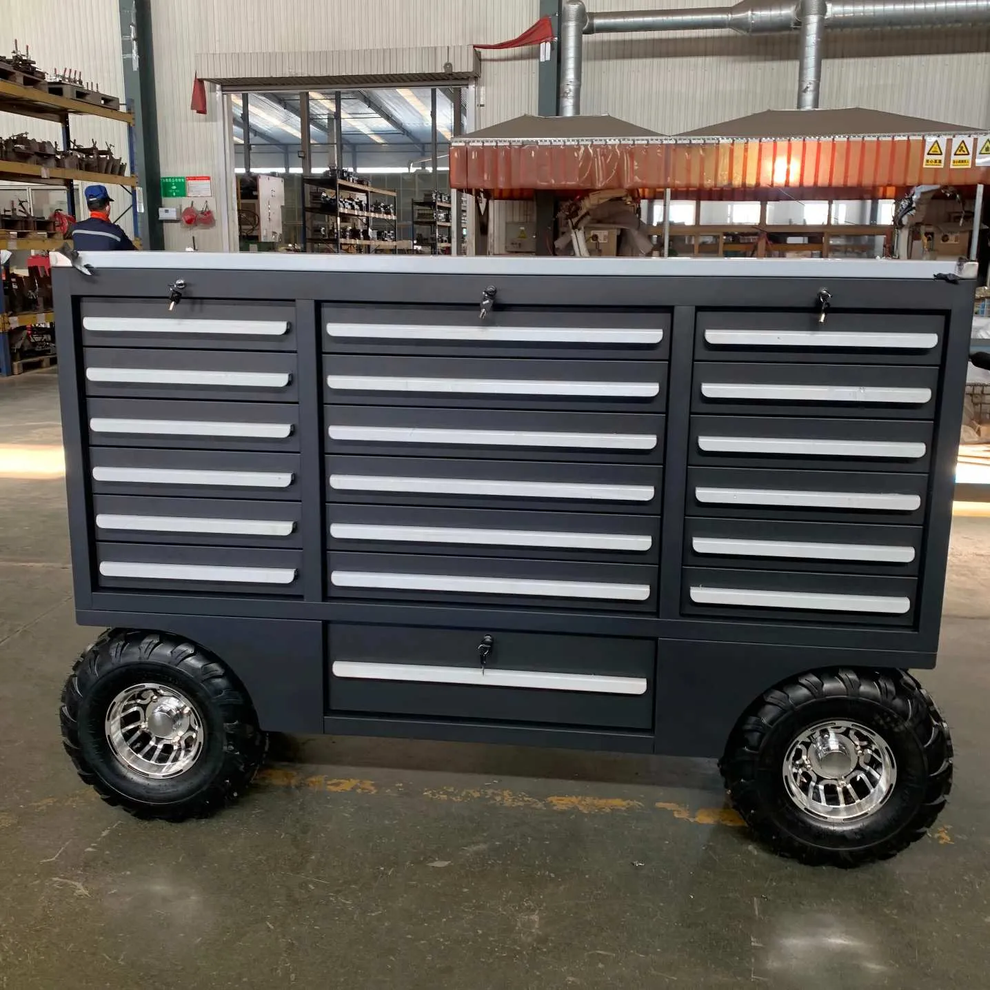 Biztonság és megbízhatóság: A fiókok zárakkal vannak felszerelve a szerszámok biztonságának biztosítása és a veszteség vagy az illetéktelen felhasználás megakadályozása érdekében. A csúszásgátló párna kialakítása elkerüli a szerszámok esését és sérülését a mozgás során.