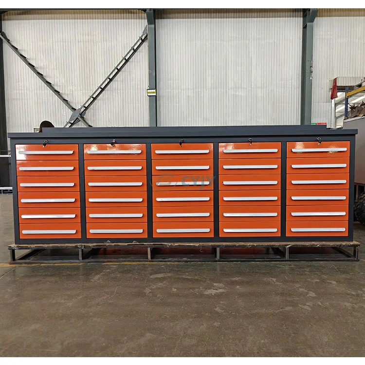 Csúszásgátló táblázat:A Narancssárga 30 fiókos munkapad fel lehet szerelni antisztatikus, olajálló vagy karcálló asztallaptal, hogy megfeleljen a precíziós munka igényeinek.