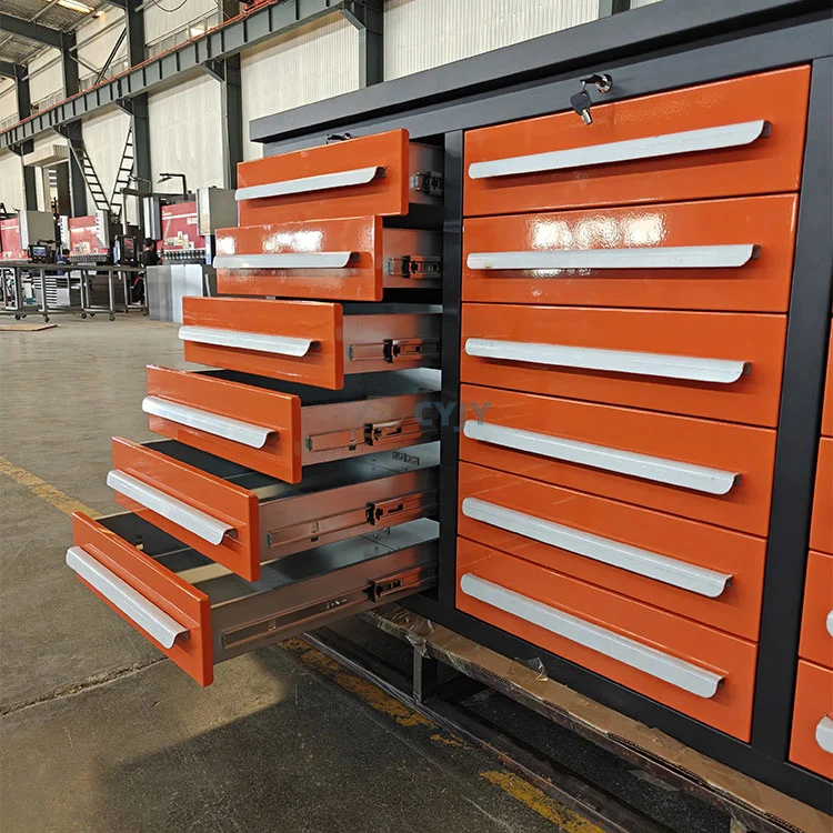 Központi reteszelő rendszer:Narancssárga 30 fiókos munkapad az összes fiókot egy kattintással zárja be, hogy biztosítsa a szerszámok és az értéktárgyak biztonságát.