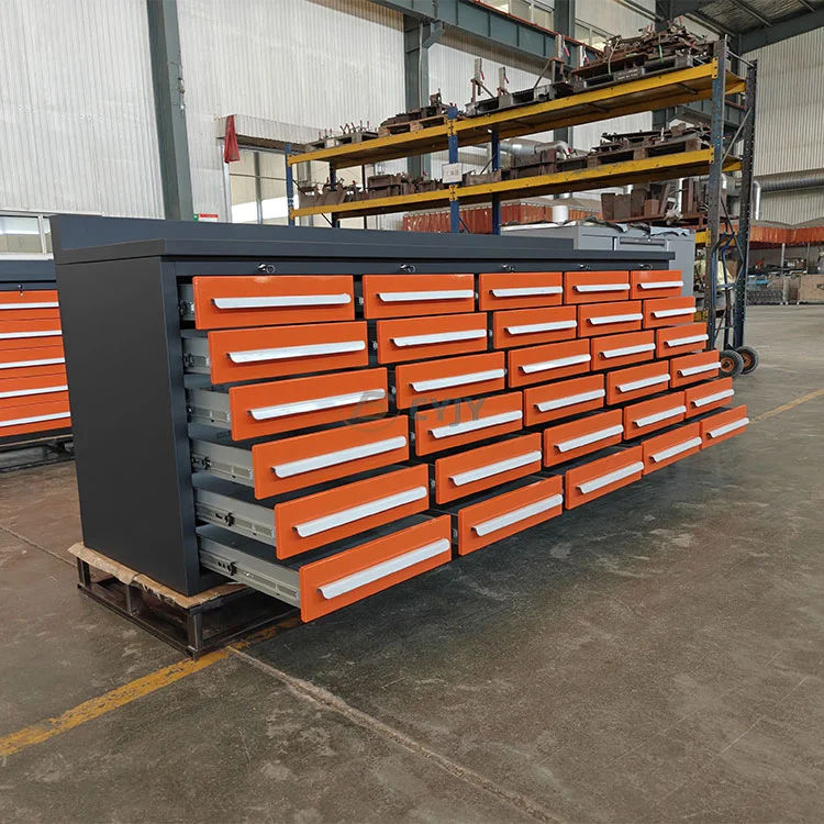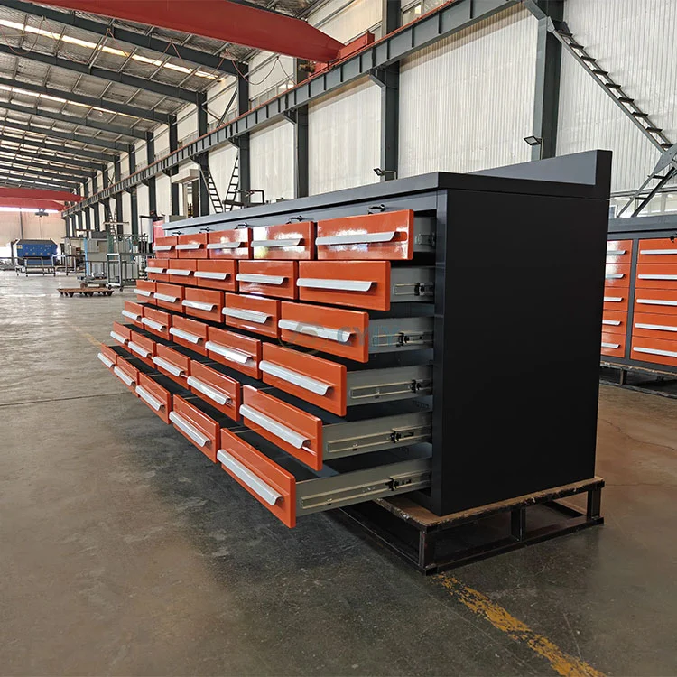 Fiókeret rakodóhordozó kialakítás:Narancssárga 30 fiókos munkapadi egy fiókot hordozhat nehéz tárgyakat (a konkrét terheléshordozónak a műszaki paraméterekre kell utalniuk), biztosítva a nehéz szerszámok biztonságos tárolását.