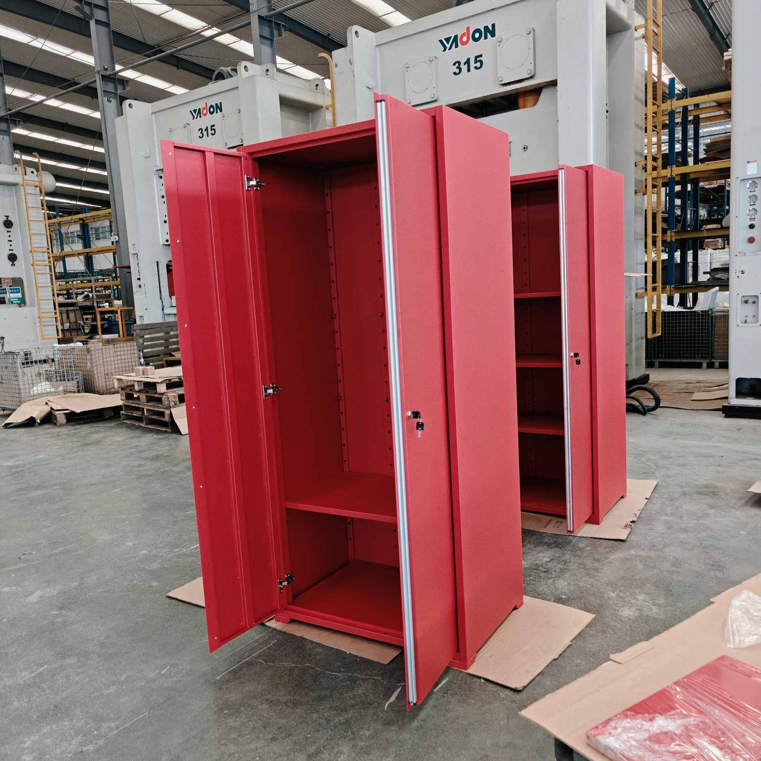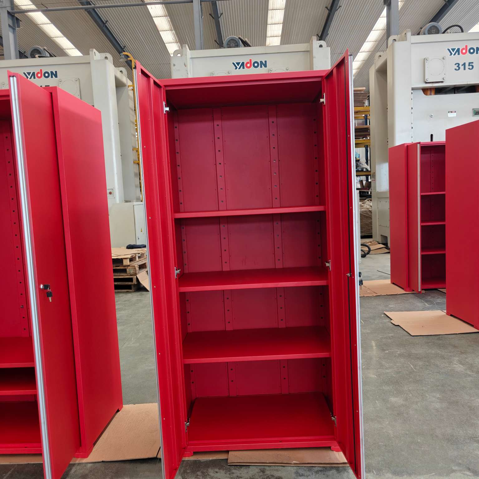 2. A piros szerszám magas szekrény felülete nagyon lapos. Az összes részre permetezés után a bevonat egyenletes színű, és a megjelenés egyszerű és elegáns, amely képes belekeveredni a különféle környezetbe.