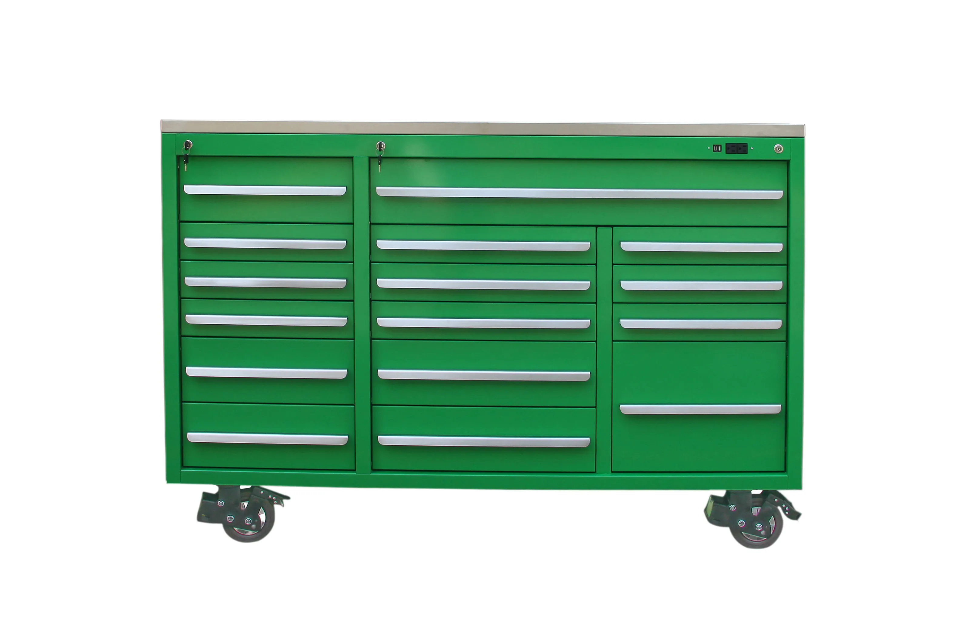 CYJYfiókos szerszámos szekrény kiváló teljesítménnyel és alacsony árral a kulcsa a munka hatékonyságának javításának és a szerszámok biztonságának biztosításában. Ez a szerszámszekrény hidegen hengerelt acélból készült. Könnyen megbirkózik a nagy intenzitású használati környezetekkel, hatékonyan elkerülve a hosszan tartó használatból eredő deformációkat és sérüléseket, és hosszú távú biztonságos tárolási helyet biztosít a szerszámok számára.